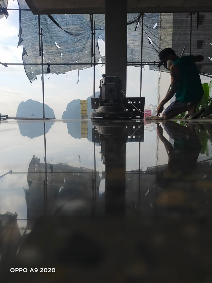 Áp dụng máy móc công nghệ tiên tiến nhất ngoài nước, các sản phẩm hoá chất chuyên dụng cho việc Thi công mài bóng sàn bê tông. Chuẩn hoá các quy trình khắt khe nhất cho ra được các sản phẩm mang tính thời đại mới không sợ thụt lùi kiến trúc.